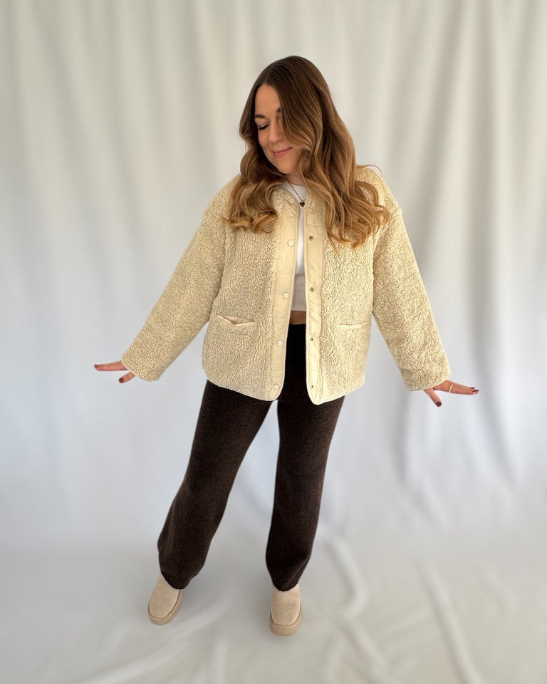 Die Teddy Jacke ist das Must-have der Saison: flauschig, weich und super gemütlich. Sie verleiht jedem Outfit sofort einen kuscheligen Touch und sorgt gleichzeitig für einen modernen, angesagten Look.